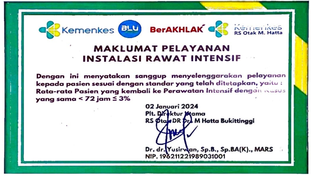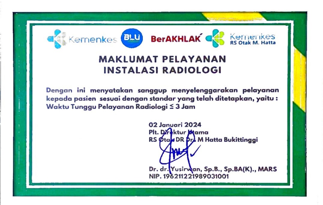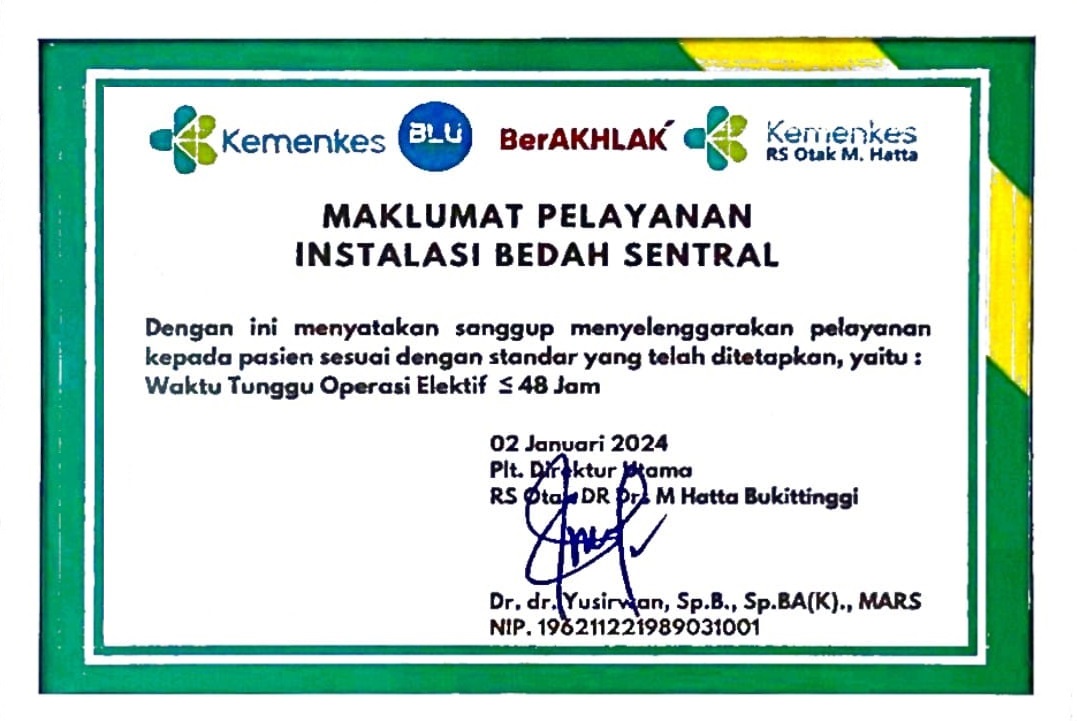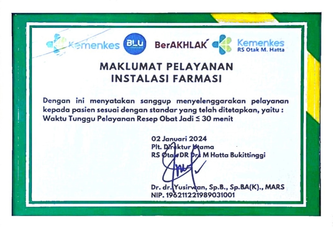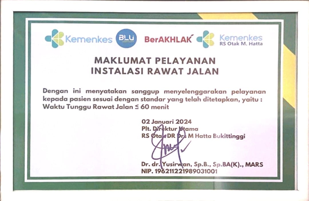 Maklumat Pelayanan yang dilaksanakan di lingkungan Rumah Sakit Otak DR. Drs. M. Hatta Bukittinggi.